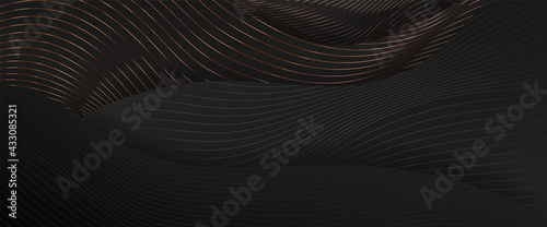 Luxury paper cut background, Abstract decoration, golden pattern, halftone gradients, 3d Vector illustration. Black, white, gold waves Cover template, geometric shapes, modern minimal banner.