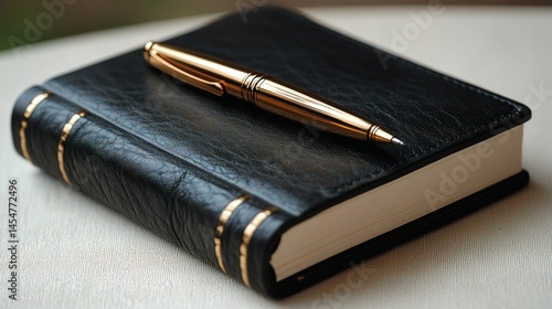 Luxury textured journal with a gold fountain pen resting on top, providing an elegant and sophisticated look for notes and planning on a transparent background, PNG image, PNG file.