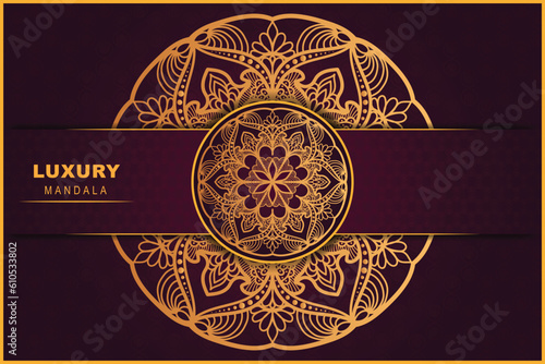 Luxury vector art ornamental mandala design background in gold and dark red color pattern template