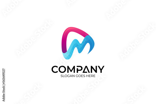M letter media play logo with modern shape design