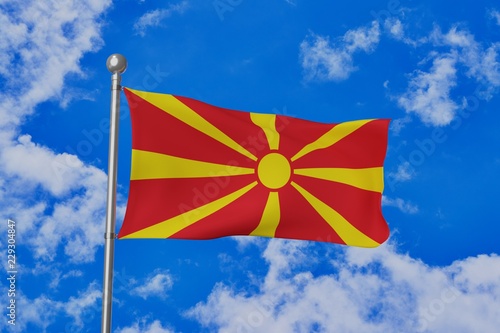Macedonia national flag waving isolated in the blue cloudy sky 3d illustration