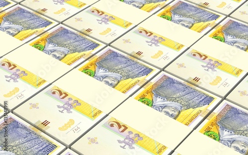 Macedonian denar bills stacks background. 3D illustration.