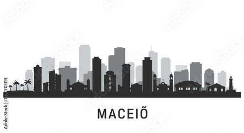 Macei Brazil Skyline with Cityscape, and Vector Illustration.