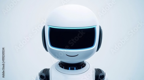 machine learning automation training concept. Robot character with a friendly smile and modern design, set against a minimalist background.