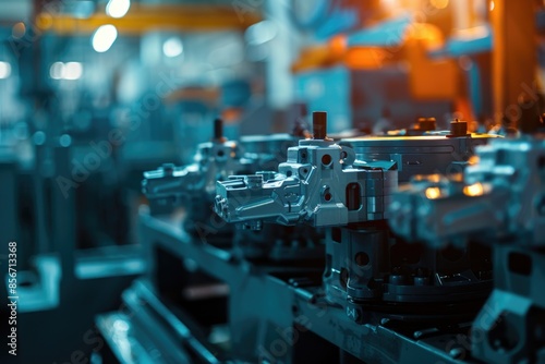 Machines and equipment in a modern industrial setting, useful for business or technology illustrations