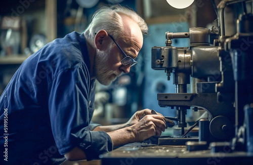 Machinist working at a generic machine in a factory or workshop. Created with Generative AI technology.