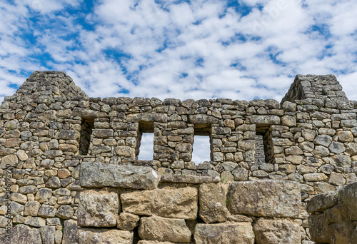 Machu Picchu, Peru - 05/21/2019: Temple of the Three Windows at the Inca site of Machu Picchu in Peru.