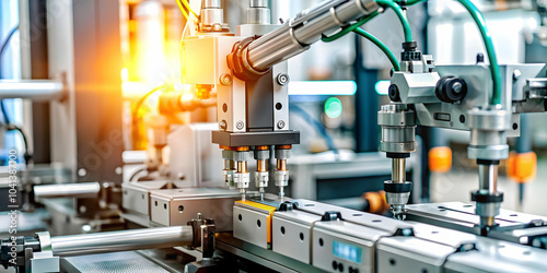 Macro Close Up AI Integrated Production Machinery Manufacturing Facility - Showcasing AI Technology in Industrial Equipment with Ample Copy Space for Photo Stock Concept