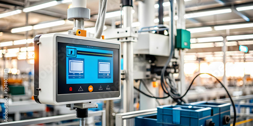 Macro Close Up AI Powered Monitoring Device Factory Real Time Production Monitoring Advanced Technology Ample Copy Space Photo Stock Concept