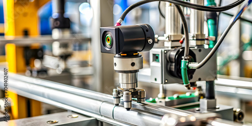 Macro Close-Up AI Powered Sensor Manufacturing Equipment Optimization Copy Space - Photo Stock Concept for Monitoring Production Efficiency with Advanced Sensors