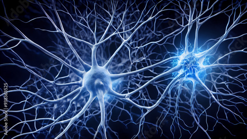 Macro Close-Up of Neurons and Neural Connections: A Detailed Scientific Visualization of the Nervous System’s Complex Interconnections, Highlighting the Branching Structures and Synapses in Neurology,