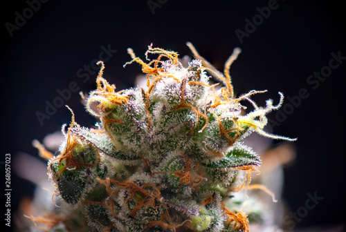 Macro detail of Cannabis flower (sour diesel strain) isolated over blac