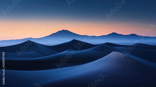 Macro flowers landscapes idea. Serene desert landscape at twilight, showcasing undulating sand dunes and distant mountains.