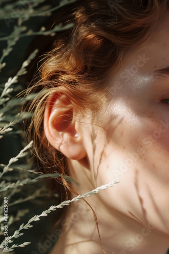 Macro image of a female ear, concept of healthy hearing or ear jewelry