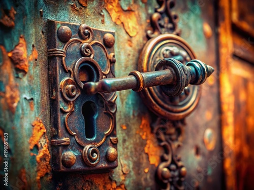 Macro Photo of Ancient Key in Rusty Keyhole - Shallow Depth of Field