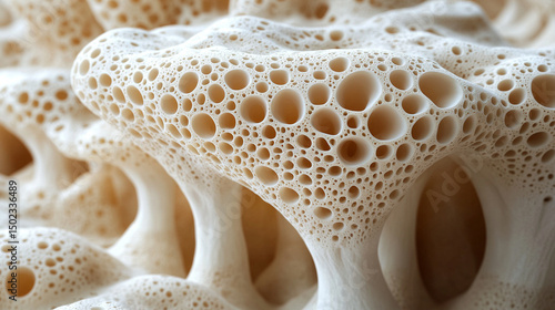 Macro photograph of organic coral texture showing intricate cell-like structures. Vivid details highlight natural patterns, textures, and vibrant colors, symbolizing marine life and underwater beauty.