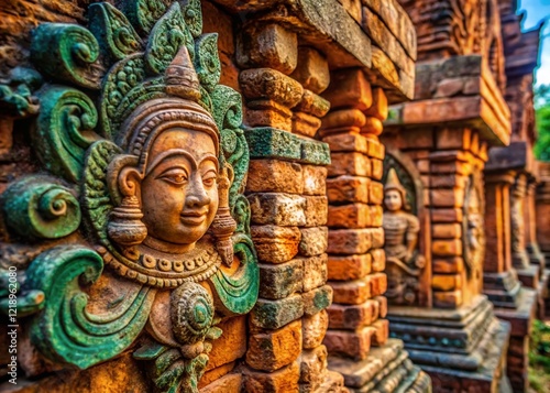 Macro Photography: Ancient Details of Wat Phlab Bang Kacha Archaeological Site, Thailand