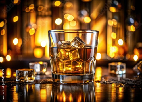 Macro Photography of a Glass of Whiskey with Ice and Rich Ambiance