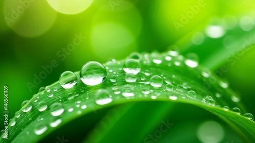 Macro photography of water drops on green leaves with blurred background. Bokeh effect, feeling of purity. AI generation