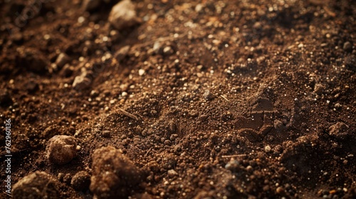 Macro shot of brown soil with visible grains and textures.