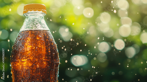 Macro shot of condensation dripping down a cold cola bottle on a summer day