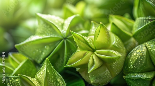 Macro shot of Indonesian carambola fruit in green color