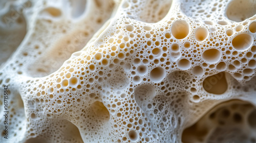 Macro shot of intricate white porous structure. natural formations, organic patterns
