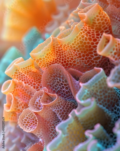 Macro shot of orange coral texture, vibrant patterns and natural beauty. unique structure of marine life. card for wallpaper, background.
