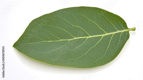 Macro study of a single leaf on clean surface, shot in 4K at 50mm with soft daylight, precise focus on veins and smooth background blur