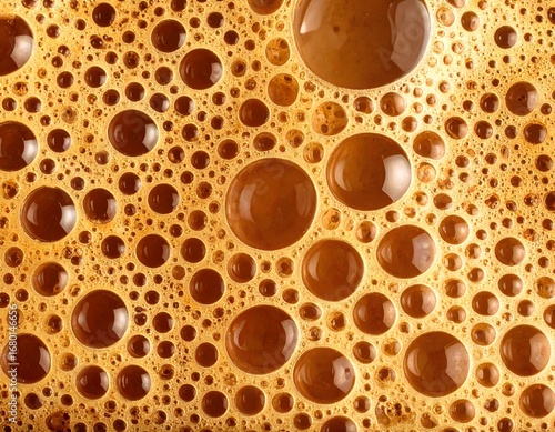 Macro Texture of Coffee Foam with Bubbles, Close-Up