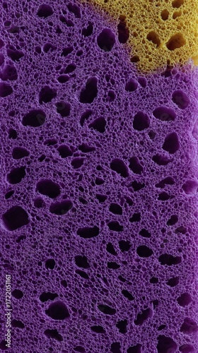 Macro View of a Porous Sponge: Close-up captures the intricate texture and vibrant colors of a new kitchen sponge. A study of material detail.