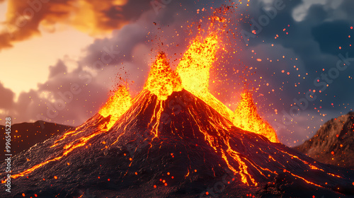 Macro view of a volcanic eruption. Volcanic Eruption. Illustration