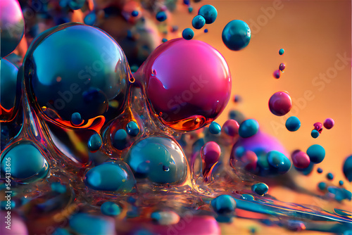 Macro view on Beautiful colorful reflexion on drops and splash, generative ai