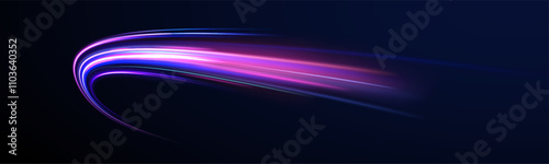 Magic moving fast speed lines. Blurred car light motion effect, city road background with long exposure night lights. Png, ray, abstract, energy, pack, effect. Acceleration speed motion on night road