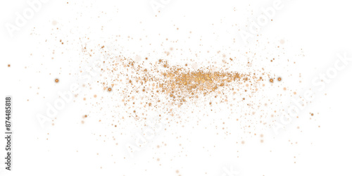 Magic shining gold dust. Christmas background. Powder dust light PNG. Fine, shiny dust bokeh particles fall off slightly. Fantastic shimmer effect. PNG.