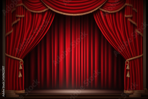 Magic theater stage red curtains Show Spotlight Red and black curtain and round stage in the dark glittering and sparkling stars Generative AI