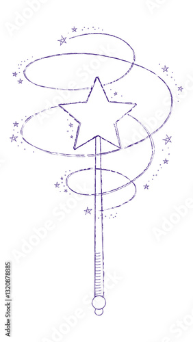Magic wand doodle. Fairytale element in sketch style. Hand drawn vector illustration isolated on white background