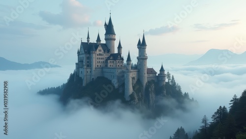 Magical Hilltop Castle Surrounded by Ethereal Mist