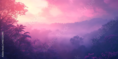 Magical Misty Sunrise Landscape Purple and Pink Nature Photography