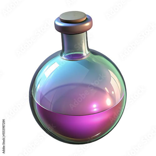 Magical Potion: A 3D Render of a Glass Bottle with Purple Liquid 3D icon high quality resolution