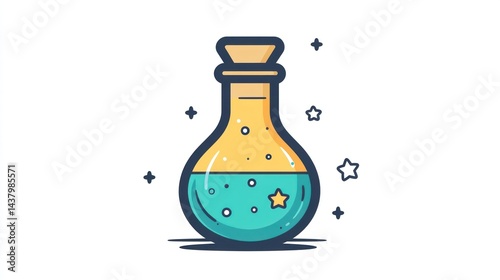 Magical potion bottle, swirling liquid, stars, fantasy, educational illustration