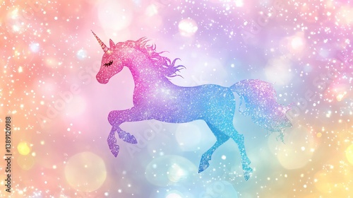 Magical rainbow glitter unicorn-mermaid birthday party background with confetti for princess pony celebrations and little girl invitations