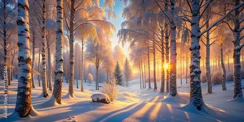 Magical Winter Birch Forest Snowscape: AI Generated Fantasy Photography