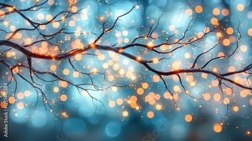 Magical Winter Branch with Glowing Lights in Enchanting Forest Nature Photography Dreamy Atmosphere