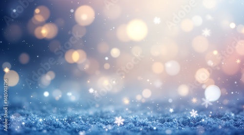 Magical Winter Landscape with Snowflakes and Bokeh Lights for Holiday Background