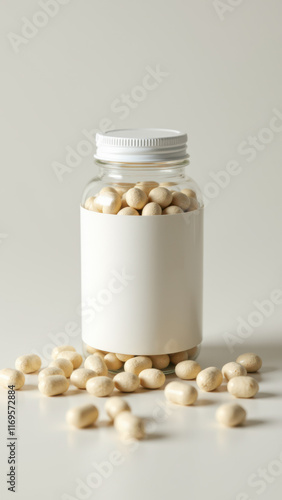 Magnesium Glycinate supplement in a clear bottle on a light grey background with a few scattered capsules.