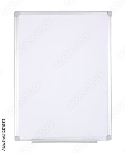 Magnetized empty whiteboard isolated on white background.