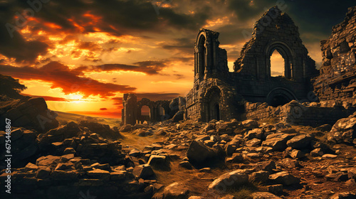 Magnificent image of ancient ruins against a dramatic sky, capturing the essence of history,