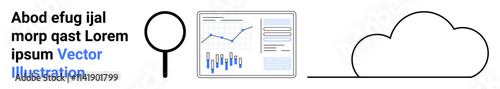Magnifying glass, analytics chart, and cloud icon. Ideal for business, data analysis, cloud computing, research, SEO, innovation, web design. Landing page