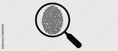 Magnifying glass examining a detailed fingerprint for forensic investigation